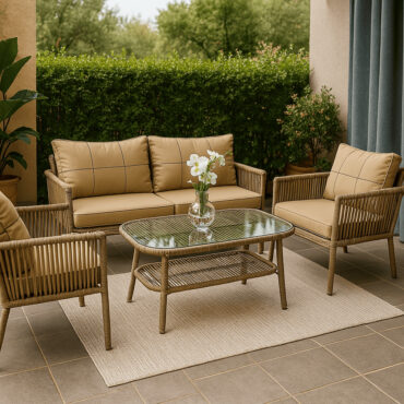 Σετ Σαλονιού Κήπου 4τμχ Συνθετικό Rattan Μπεζ – Μπεζ Μαξιλάρια & Πλαστικό Τραπέζι