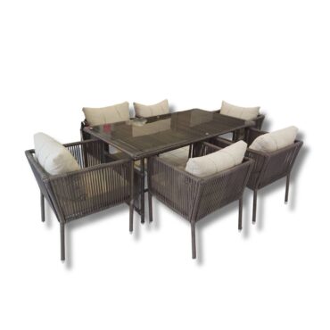 Σετ Τραπεζαρία Κήπου 7τμχ με Μπεζ Μαξιλάρια & Γυάλινο Τραπέζι